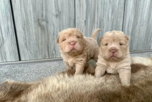 Unsere letzten beiden wunderschönen Bärenfellwelpen sind geimpft (Erst- und Zweitimpfung), tierärztlich untersucht, entwurmt und gegen Flöhe behandelt und bereit für ihr neues Zuhause. Wir freuen uns, Ihnen unseren wunderschönen Wurf von 7 Welpen unseres reinrassigen Schoko-Tan-Shar-Pei-Rüden Simba und ...