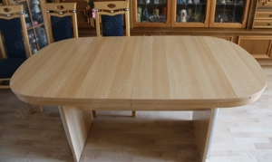 verkaufe aus Haushaltsauflösung wenig benutzter Ausziehbarer Esstisch aus hellem Holz-Buche Optik mit ovaler Tischplatte und abgerundeter Tischkante, mit einem zentralen Säulengestell und zusätzlichen Metallstützen.  Tisch ca. 1,58 lang ca. 0,92cm breit ca.0,75cm hoch der Tisch ist mit 4 Stck. Einlegeplatten ...