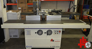 SCM Schwenkfräse Ti 105 N-Digital, Neumaschine, mit Tischverlängerungen, Schwenkbereich der Frässpindel +45 , Frässpindeldrehzahlen 3.5 U min, Spindelverstellung in beide Achsen über Digitalanzeigen, Anschlagverstellung über Kurbel mit Digitalanzeigen, 2 Absaugstutzen 120 mm, 400 V, 7 kW, Rechts ...
