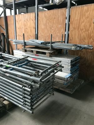 Plettac Baugerüst Lieferumfang : - 16 Füße - 30 Geländer (2,50m) - 4 Geländer (3,00m) - 2 Diagonalen (3,60m) - 5 Diagonalen (3,20m) - 4 Belege (3,00m) - 18 Belege (2,50m) - 6 Leitergänge (2,50m, komplett Alu ) - 4 Endpfosten (1m) - 3 Endpfosten L (1m) - 16 Rahmen (2,00m) - 8 Rahmen (1m) - 6 Stirngeländer ...