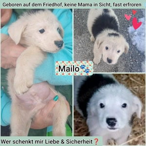 Mailo ein fröhlicher, neugieriger kleiner Abenteurer sucht sein Zuhause Vermittlungshilfe für Jasmina Kapetanovic Pfotenhilfe Sarajevo Mailo hatte keinen leichten Start ins Leben. Im tiefen Winter auf einem Friedhof geboren, die Mutter erschossen, ein Geschwisterchen erfroren Eine liebe ...