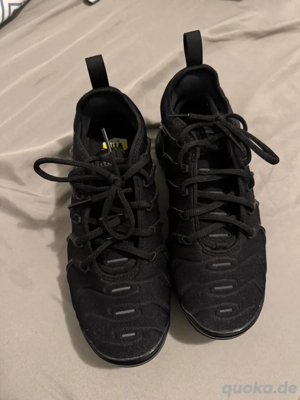 Ich verkaufe hier Nike Air VaporMax Plus Schuhe. Die Schuhe wurden nur zweimal getragen und sind in einem sehr guten Zustand. Schuhgröße 40. Farbe Schwarz. Schuhkarton ist nicht mehr vorhanden. Runde Kappe Gepolsterte Decksohle 5-Loch-Schnürung Materialmix Fersenlasche Flexible Laufsohle Dämpfung Mesh Schnürverschluss Versand ...
