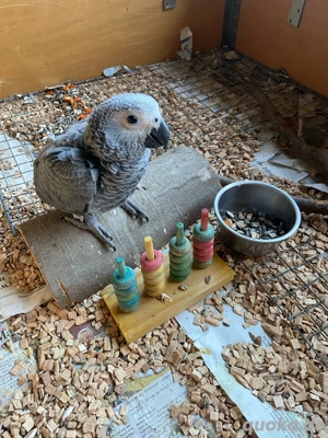 Verkaufe Graupapagei Jungtier weblich geschlossen beringt und sehr zahm. Geschlüpft am 26.10.25 Mit allen erforderlichen Papieren. Abgabe wenn futtertest.