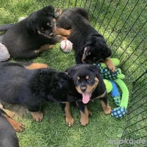 Ich habe reinrassige Rottweilerwelpen ohne Stammbaum abzugeben. Beide Elterntiere können vor Ort besichtigt werden. Die Welpen wachsen bei uns im Haus und Garten auf, sind regelmäßig entwurmt, geimpft und gechippt. Bei ernsthaftem Interesse oder Fragen kontaktieren Sie uns bitte. Sie erreichen mich per ...