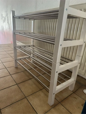 Verkaufe dieses Schuhregal von IKEA. Das Regal besteht aus zwei aufeinander festgemachten Regalen und bietet so Platz für 12 paar Schuhe. Es weist leichte Gebrauchsspuren auf. Das Regal kann einzelne oder doppelt verkauft werden. Der Preis bezieht sich auf ein Regal. Ein Regal hat die Maße: Breite 79cm, ...