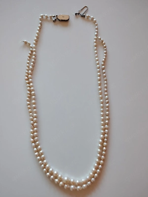 Schöne Süßwasserperlenkette . Der Durchmesser der Perlen beträgt 0,7cm. die Länge insgesamt 92cm und ein Gewicht von 28,9g. Der Verschluss besteht aus 835 Silber.