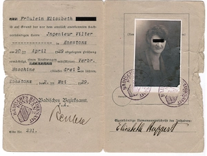Alter Führerschein einer Frau für einen Kraftwagen mit Verbrennungsmotor (Klasse 3b). Ausgestellt am 21. Mai 1929, Das Dokument ist stark abgenutzt. Schwarze Balken sind auf den Originalen nicht sichtbar.