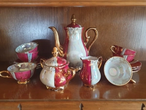 Verkaufe ein sehr gut erhaltenes Vintage Mokkaservice mit Goldrand Das Service wurde nie benützt bestehend aus; 1 Kaffeekanne 1 Milchkännchen 1 Zuckerdose mit Deckel 6 Tassen 6 Untertassen Versand: ...