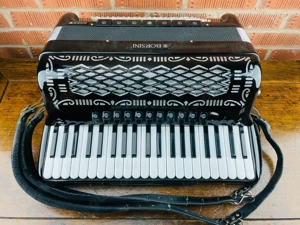 Borsini Professional Midi-Akkordeon SL 4117 M 120 Bässe, 41 Klaviertasten, 11 Diskantregister, 7 Bassregister und ein Ledergurt. Die Klaviertasten und der Gurt weisen leichte Gebrauchsspuren auf, ansonsten ist das Instrument in ausgezeichnetem Zustand mit hervorragendem Klang und Anschlag, MIDI-Netzteil, ...