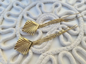 Elegante Ohrringe aus Edelstahl, vergoldet, in Form eines Blattes mit zarten hängenden Kettchen Modernes und stilvolles Design perfekt für Alltag oder besondere Anlässe. Material: Edelstahl vergoldet Form: Blatt Blattdesign Detail: hängende Kettchen leicht und angenehm zu tragen Zustand: ...