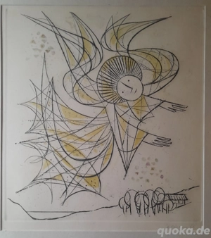 Alfred Finsterer - Engel - Kunstdruck Radierung 75cm x 65cm mit weißem Hintergrund 50cm x 46cm ohne weissen Hintergrund Signierter limitierter Kunstdruck Nr. 66 In der Regel sind die Finsterer-Kunstdrucke meines Wissen auf 180 Stück limitiert Stück des Glasrahmens abgesprungen Der untere Schaden ...