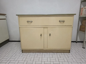 Spültischkommode 50er 60er Jahre, oberer Teil ausschwenkbar, zwei Emaille Schüsseln Masse ca.: Breite 110cm, Tiefe 56cm, Höhe 82cm