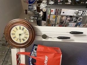 Biedermeier Schwarzwalduhr mit Glas und Rundholzrahmen mit Gong , die Uhr befindet sich in einem altersgemäss guten Zustand. Das Glas ist heil! Habe die Uhr jetzt an der Tür aufgehängt zum Testen. Sie läuft und schlägt. Natürlich kann nach über 100 Jahren keine Garantie für die Funktionsfähigkeit übernommen ...