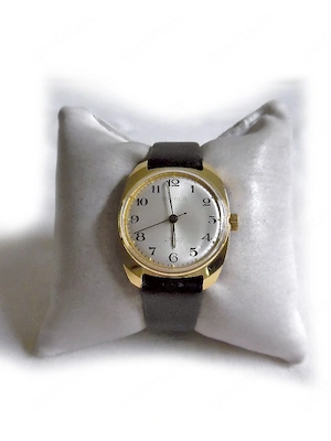 Schöne Armbanduhr von dem Hersteller "Dugena". Modell: Jongster. Die Uhr befindet sich noch in einem sehr guten gebrauchten Zustand. Voll funktionsfähig. Eigenschaften: Gehäuse: Stahl (Steel Back), vergoldet, D=31 mm, wasserdicht. Band: Schwarzes Lederarmband mit einer Dornschließe. Zifferblatt: ...