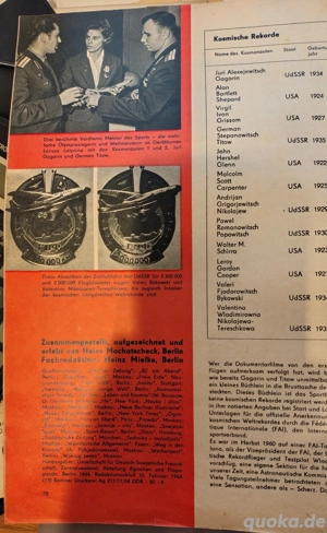 Herausgeber: Gesell. f. Deutsch-Sowjetische Freundschaft, 1964, 80 Seiten, zahlreiche sw Fotos, Informationen zur Entw. der Raumfahrt, von Ziolkowski bis Wostock Mercury; Versandkosten 5,00