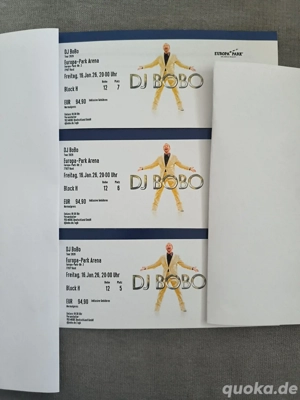 Verkaufe drei Tickets für das DJ Bobo Konzert im Europapark. Top Sitzplätze. Super als Weihnachtsgeschenk. Der Preis gilt natürlich für alle drei Tickets zusammen. Nummer 1521 4004515