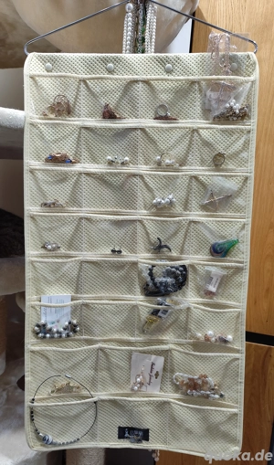 Biete massenweise Modeschmuck an. Viele Ringe, Halsbänder, Armbänder, Anhänger und Ohrschmuck usw. Inklusive den Schmuckkästchen und dem Hängeregal. Ideal für Flohmarkt mit gutem Verkaufspotenzial. Ich weiße darauf hin, dass es sich nicht um Edelmetalle handelt, obwohl das ein oder andere Stück gepunzt ...