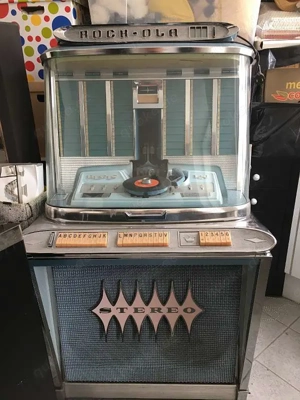 Ich biete eine von ca. 4000 Stück Rock-Ola Jukebox 120 1488. Die Jukebox ist voll funktionsfähig und in sehr gutem Zustand. Das einzige ist, wenn man Münzen einwirft wird der Kontakt nicht ausgelöst damit eine Schallplatte ausgewählt werden kann, dies kann aber leicht behoben werden. Sie läuft original ...