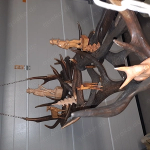 Habe hier eine imposante Zusammenstellung von Geweihen, mann kann die darauf stehenden Figuren natürlich beliebig ersetzen. Was auch immer man möchte, oder Natur belassen. Das Geweihgestell hing bei uns im Hobby Keller unter 3 LED Strahler, was sehr dekoratief aussah. Das Gestell ist ca. 100 cm lang ...