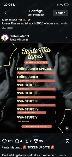 4 Tante Mia Tanzt Tickets abzugeben - auch Einzeln