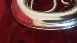Besson Sovereign 967GS Euphonium. Ausgezeichneter Arbeitszustand! Ca. 1996. Kürzlich gewartet. Lieferung in einem Besson Prestige-Hartschalenkoffer. Der Reißverschlussanhänger am Gehäuse ist kaputt, funktioniert aber immer noch. Eine sehr kleine Delle (siehe Bild)