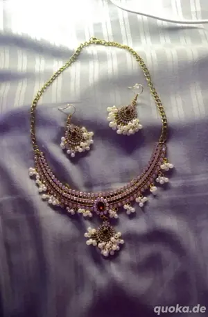 paar Ohrringe mit Kette ganz neu weise Perlen mit hell Gold Farbe neu