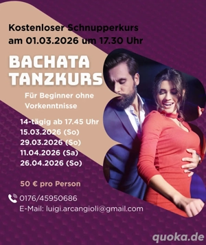 Neue Tanzkurse in Ludwigshafen-Maudach mit kostenlosem Schnupperkurs!!! Discofox und Bachata Tanzkurse für Beginner im 14-tägigen Wechsel in Pajas Restaurant (Allemannia Maudach) an vier Terminen: 15.03.2026 (Sonntag) 29.03.2026 (Sonntag) 11.04.2026 (Samstag) 26.04.2026 (Sonntag) Der Discofox Tanzkurs ...