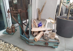 Verkaufe alte Sackwaage auf Rollen die ich zum leichteren Transport angeschraubt habe. Ohne Deko aber mit Gewichten.