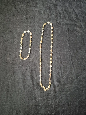 Die Kette und das Armband sind in Blütenform und 18 Karat vergoldet.