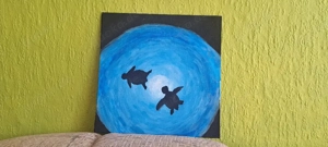 Schildkröten im Ozean   Handgemaltes Acrylbild