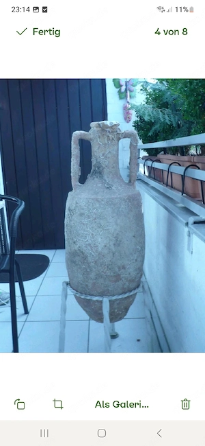 Antike römische Amphore H 78cm teilrestauriert mit Metallständer