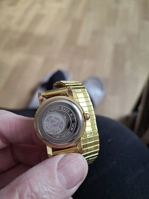 verkaufe dringend goldene damenarmband uhr sie ist neu und funktioniert sogar logo von giovanni beverly hills