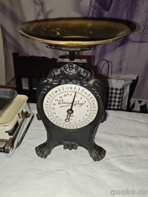 Antike Gusseisen-Waage "Wirtschafts-Waage" - Ein zeitloser Blickfang** Zu verkaufen ist diese wunderschöne, antike Küchenwaage aus Gusseisen, bekannt als "Wirtschafts-Waage". Mit ihrem eleganten Jugendstil-Design ist sie ein absoluter Hingucker für jede Küche im Landhaus- oder Vintage-Stil und ein besonderes ...