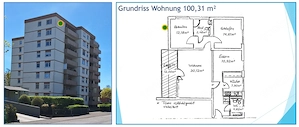 1. OG, 110m , zentr. ruhige Lage, Bj 64 72, ZH, Kabel-TV, Loggia, Wäscheraum, Keller, Garage, Garten NR, keine Haustiere KM 750 , NK 400 , 2 MM Kaution Ab 01.08.2026