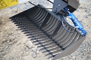 Mühelos saubere Erde 35-mm-Gitterrost 45 hydraulische Neigung. Das angebotene Produkt umfasst den Schwenkmechanismus und die Halterung MS-01. Sofortiges Sieben der 35-mm-Abstand der Gitterstäbe trennt Steine, Geröll und Wurzeln ab, noch bevor Sie mit einer herkömmlichen Schaufel ausklopfen ...
