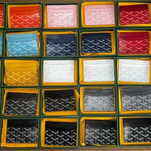 Hiermit verkaufe ich meine cardholder, dazu eine Box und eine Karte. Verfügbare Farben: Blau Pink Rot Grau