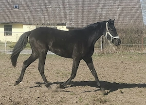 Wir geben unsere schwarze Stute, eingetragen als kleines deutsches Reitpferd, ab. Sie ist am 14.05.2024 geboren und genießt noch als junge Stute ihr Leben in einer gemischten Herde auf der Koppel. Sie kennt auch Boxenhaltung. Zur Zeit ist sie 143 cm und wird ca 148cm+. Dem Hufschmied wurde sie schon ...