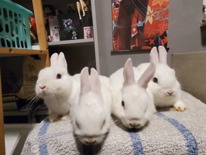 Ich verkaufe 4 weibliche Hermelinbabys. Sie sind knapp 3 Monate alte reinrassige Blauaugen. Sie bekommen täglich Frischfutter, aber auch Heu oder auch Kräuterfutter.