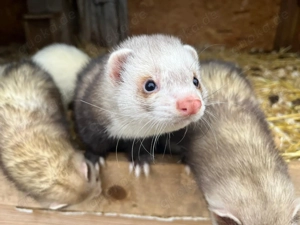 Biete 3 Frettchenrüden aus einem Wurf von April 2025 an. Der Weiße, sowie der Größe Iltisfarbene ist nicht zu verkaufen. Aktuell leben sie in einer Männer- WG draußen, sind sehr lebhaft und neugierig. Preis versteht sich pro Tier