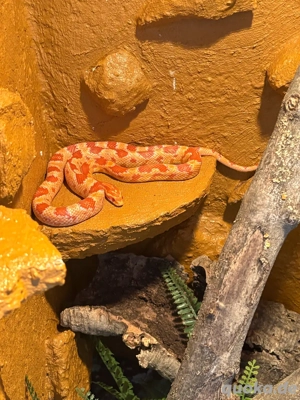 Verkaufe hier meine Kornnater. Ich gebe sie ab weil ich leider nicht mehr das Interesse hab wie anfangs und sie ein besserer Zuhause verdient hat. Sie ist ca 4 Jahre alt. auf Nachfrage kann das Terrarium und Zubehör mit Aufpreis übernommen werden.