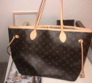 Ich verkaufe meine Louis Vuitton Neverfull MM im klassischen Monogram Canvas, inklusive der herausnehmbaren Pochette (mit Lederband & Karabiner), wie auf den Fotos zu sehen. Modell: Neverfull MM Farbe: Monogram Canvas Naturleder Innenfutter: Gestreift (beige braun) Zubehör: Original Pochette ...