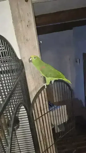 Der Amazonenpapagei ist sehr freundlich zu seinem Käfig und seinen Spielsachen. Zum Verkauf wegen Zeitmangels.