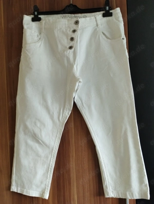 Super stretch Leggings in weiß von Janina in 42. Selten getragen, passt mir nur leider nicht mehr. Keine Taschen vorne, dafür aber zwei tiefe hinten. Breiter Bund. Bundweite 87cm, Außenbeinlänge 83cm, Innenbeinlänge 58cm. 76% Viskose, 21% Polyester, 3% Elasthan. Nichtraucher Haushalt