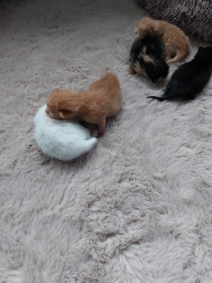 Unsere 6 kleinen Katzenbabys, geboren am 20.03.2026, sind in 12 Wochen bereit, in ihr eigenes Zuhause zu ziehen. Es sind 4 Jungs und 2 Mädchen die drei Orange sind jungs der weiße ist auch ein junge und die drei farbige und die schwarze Katze sind Weibchen. Die Kleinen wachsen bei uns im Haushalt auf, ...