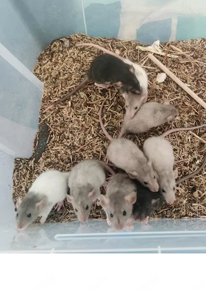 9 Ratten Jungs suchen ein neues zu Hause. Geboren am 16.2.26 und Abgabebereit ab dem 30.03. Dann sind sie 6 Wochen alt. Jeweils 25 Euro Auf den ersten 2 Bildern sind die Farben zu sehen. Die meisten sind grau. Ansonsten ist es eine bunte Mischung. Aufgewachsen zusammen mit Mutter und insgesamt 11 Jungtieren ...