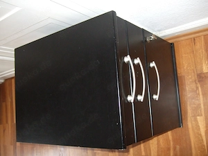 Rollcontainer für Hängehefter, H 60 cm, T 57-59 cm, B 42,5 cm, schwarz, abschließbar, inkl. 2 Schlüssel, 3 Schubladen, Vollholz (außer 1 Kunststoff-Schublade und 3 Metallgriffen), inkl. 45 Hängehefter, Zustand: gebraucht. Privatverkauf, daher kein Rückgaberecht und keine Gewährleistung. Der Verkauf erfolgt ...