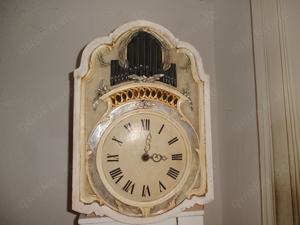 Sehr schöne und sehr seltene Schwarzwälder Flötenuhr von Ignaz Bruder jun., Waldkirch erste hälfte 19 Jh. ( um 1820) Holz geschnitzt, und Gefast. Reich verziertes volutengerahmtes Schild mit Schallgitter und Zierpfeifen-Relief. Holzgespindeltes 24 Stunden-Gehwerk mit Schlag auf Tonfeder zur vollen ...