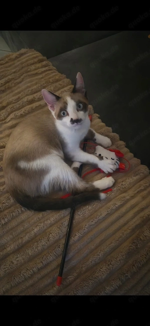 . Schweren Herzen müssen wir uns von unsere außergewöhnliche und besonders Hübsche katze trennen sie ist 5 Monate jung ein Mix aus oriental kurzhaar und Siam katze sie ist sehr verspielt hat Energie und total lieb fängt schon an zu schnrren wenn sie jemanden sieht sehr anhänglich ist nicht scheu wünschen ...