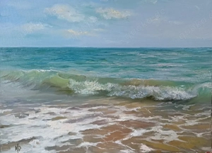 Sanfte Wellen, sonniger Tag. Ölgemälde,  Bild