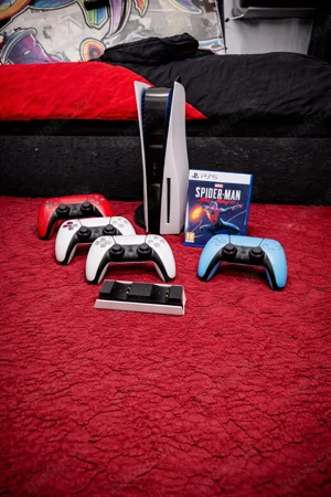 PlayStation 5 (825 GB) + 4 Controller + Zubehör+1spiel Verkaufe eine voll funktionsfähige PS5 mit 825 GB Speicher. Dabei sind 4 originale DualSense-Controller (alle getestet & funktionieren einwandfrei). Zustand: Sehr gut, nur ein kleiner Kratzer vorne über dem USB-Port (rein optisch) siehe Bild ...